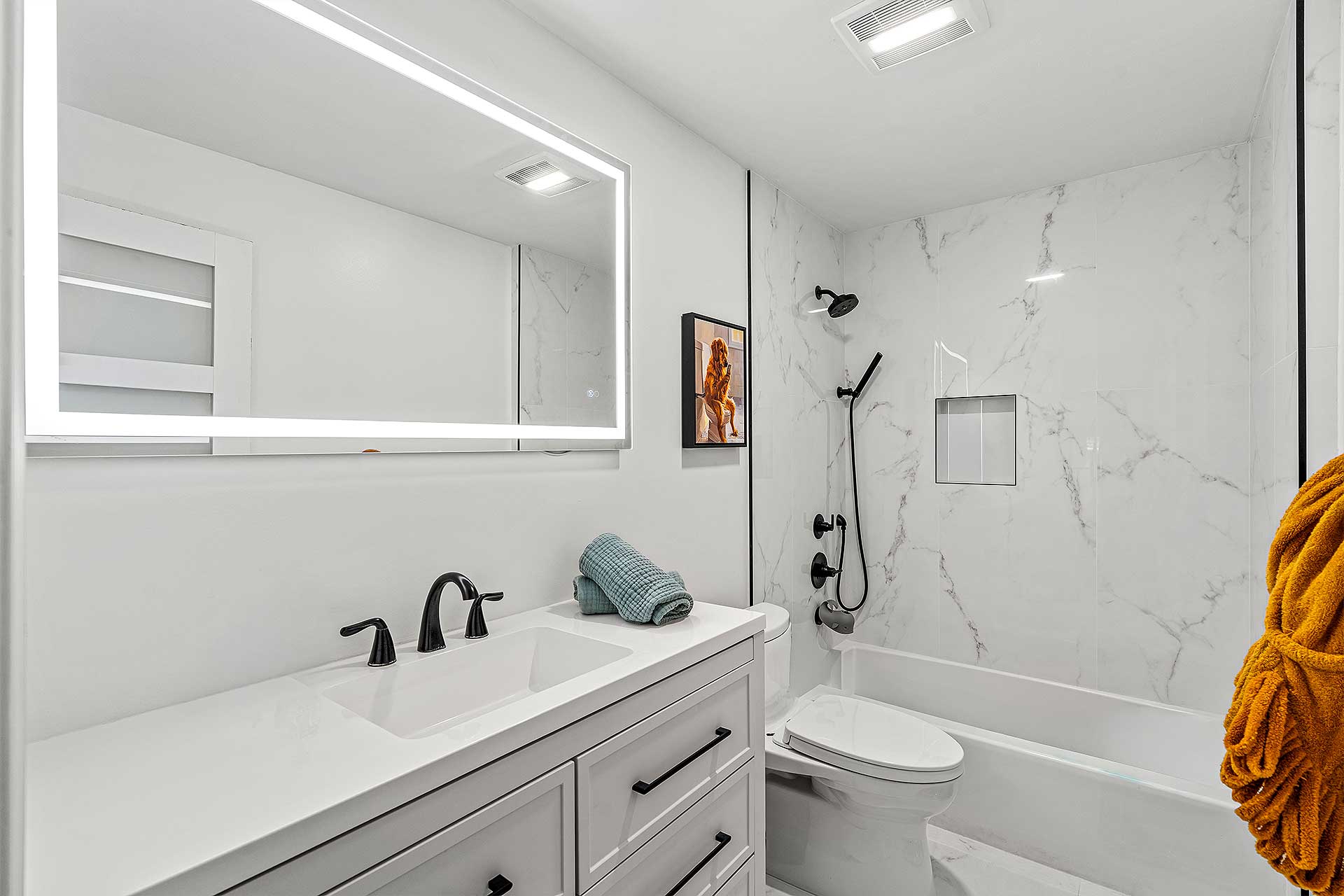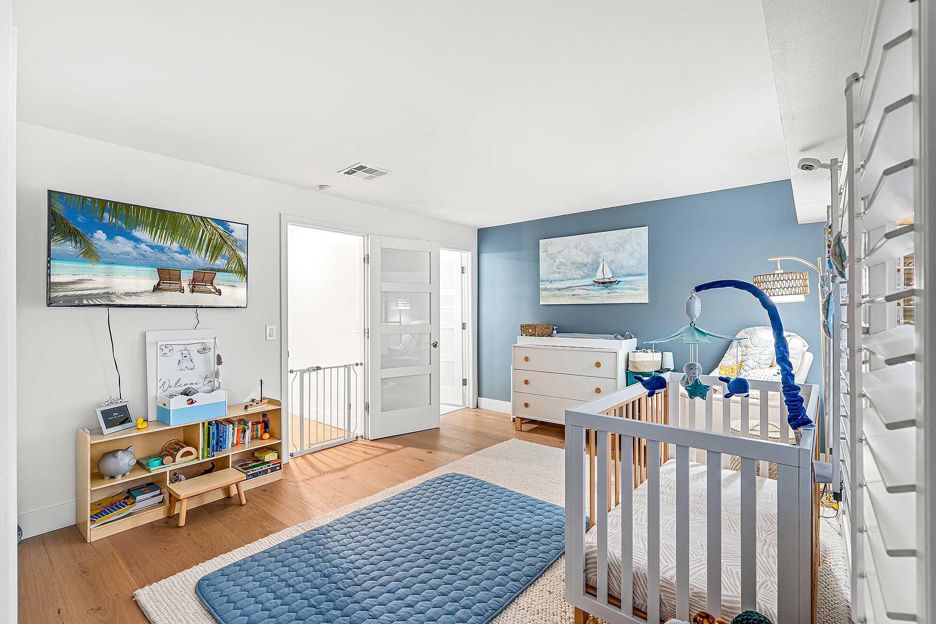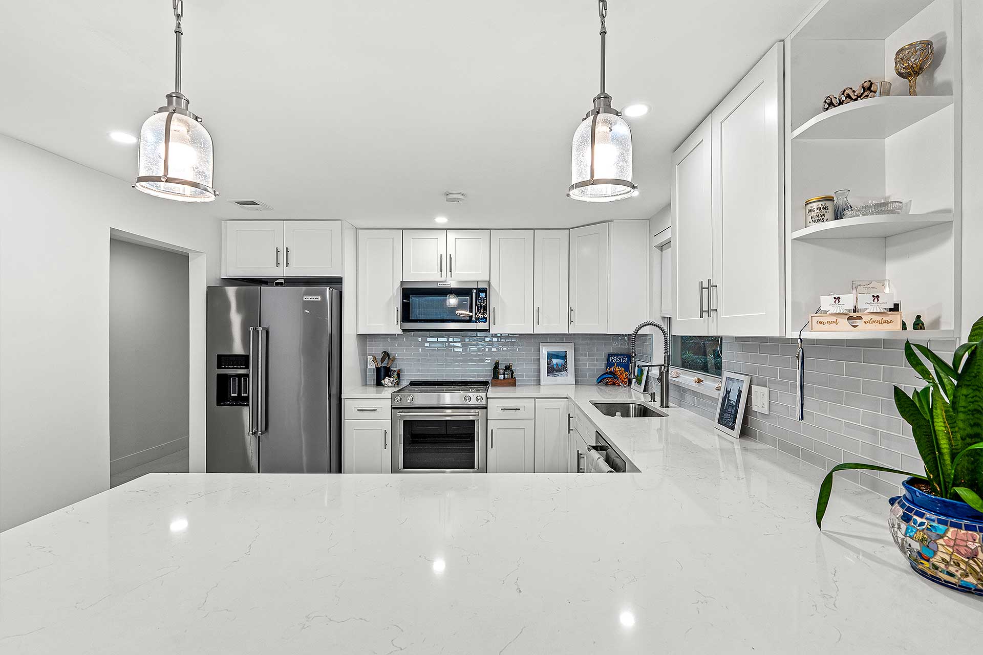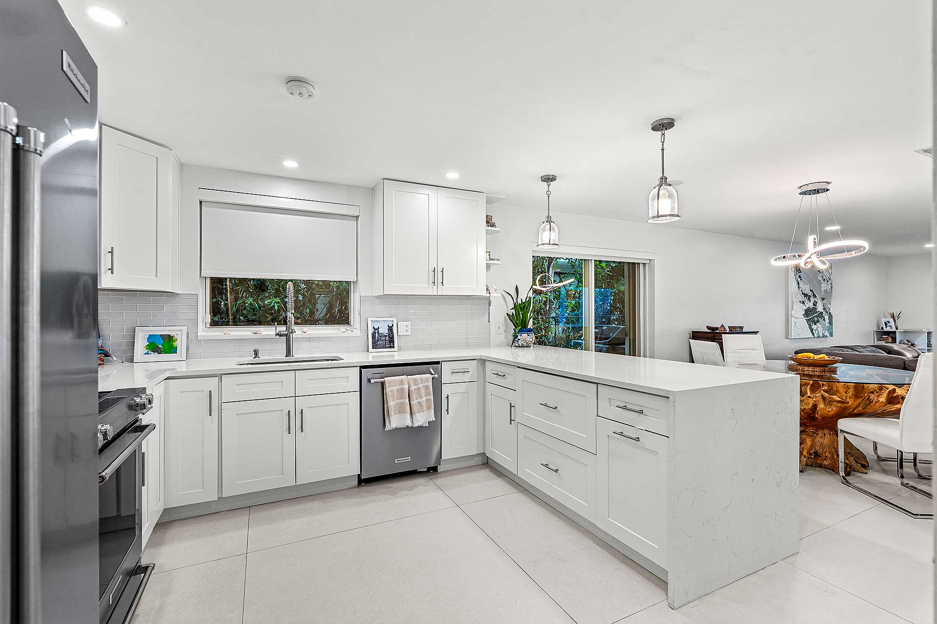 Perfect for indoor/outdoor living and boating, this completely renovated three-bedroom residence, with 2,048 total square feet, offers a prime no wake Intracoastal Waterway setting in the coveted Seagate neighborhood, close to the beach and Downtown Delray Beach’s vibrant Atlantic Avenue. With a light-filled ambience and oriented for water views, the living and dining area are designed in an open-concept plan, with one set of sliding doors opening to an awning-covered patio that flows out to the Intercoastal Waterway dock on, and a second set opening to a pocket garden. The adjacent kitchen is finished with custom cabinetry, quartz countertops, sea-glass tile backsplashes, a breakfast counter and high-end stainless-steel appliances. On the second floor, the primary suite includes a bedroom opening to a large awning-covered balcony overlooking Intracoastal sunset views, along with a custom-fitted walk-in closet and a bathroom with custom cabinetry, quartz countertops, dual sinks, a glass-enclosed shower and soaking tub. Of the two ensuite guest bedrooms, one accesses an east-facing balcony. Completing the floor plan are a half-bath, laundry and a one-car garage with an oversized driveway. Details throughout include wood and large-format tile flooring along with blinds and plantation shutter window coverings.