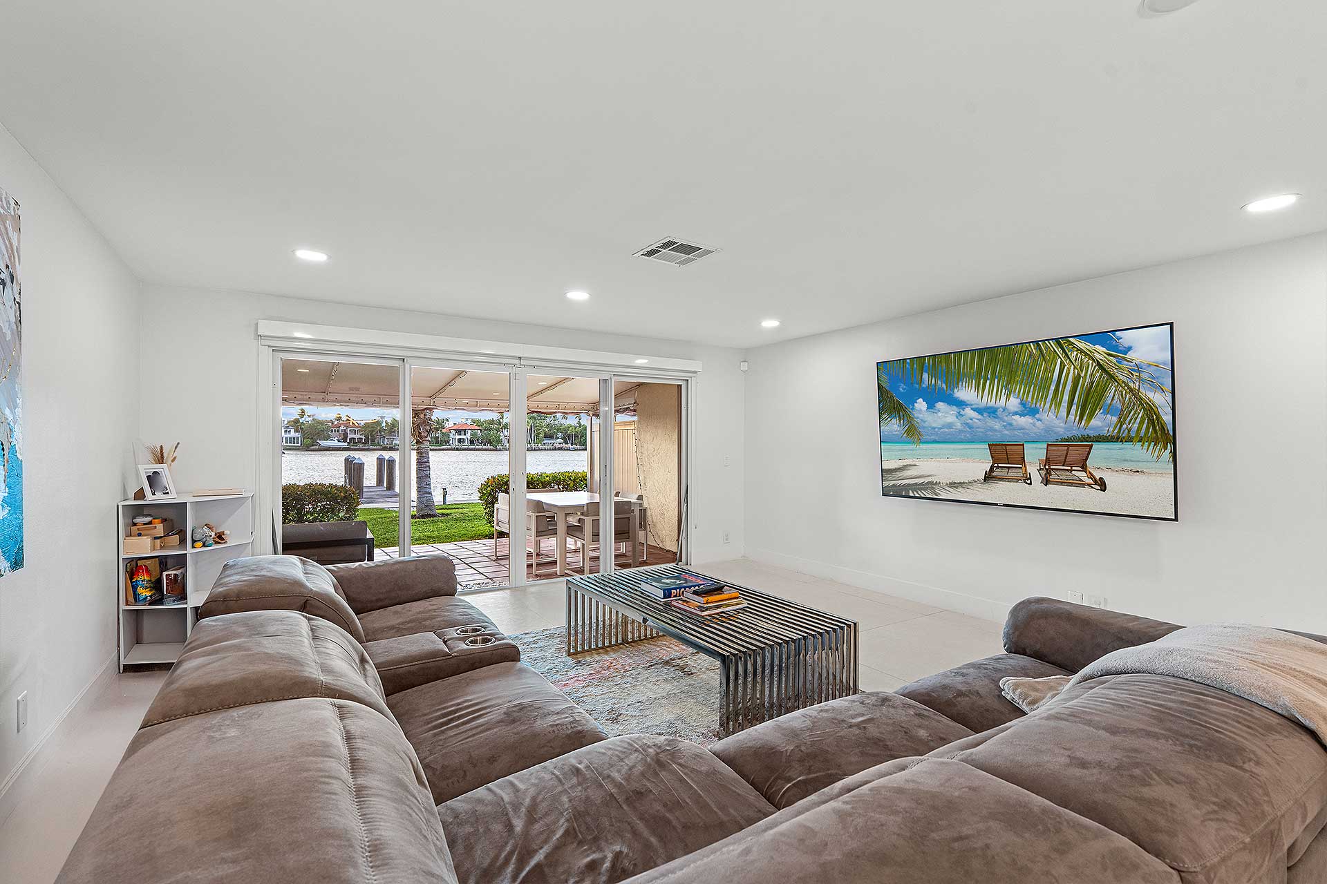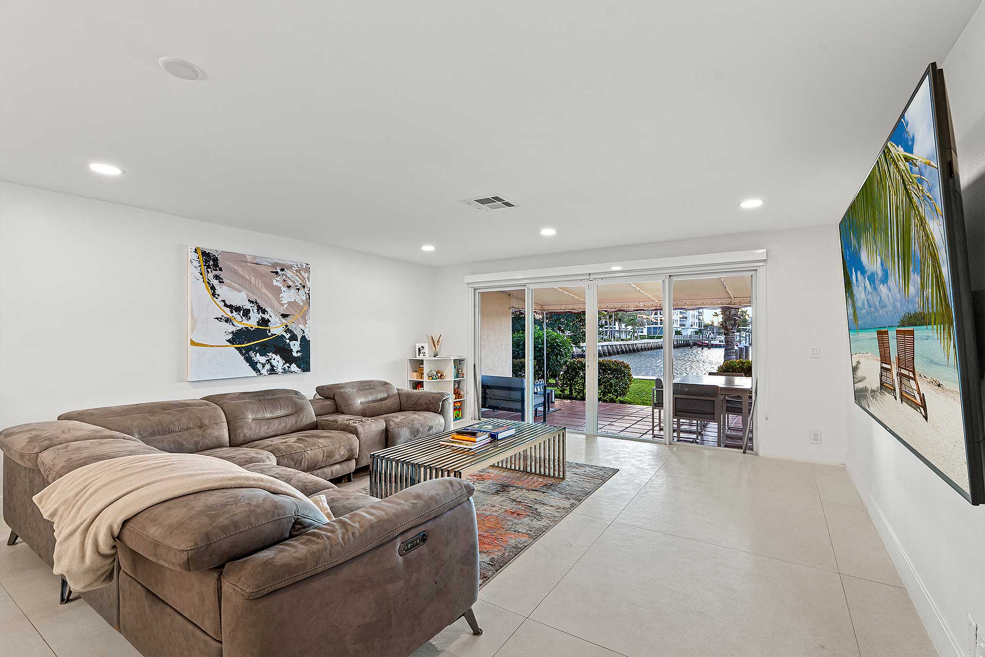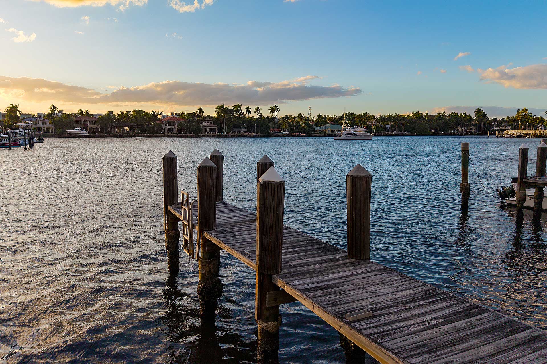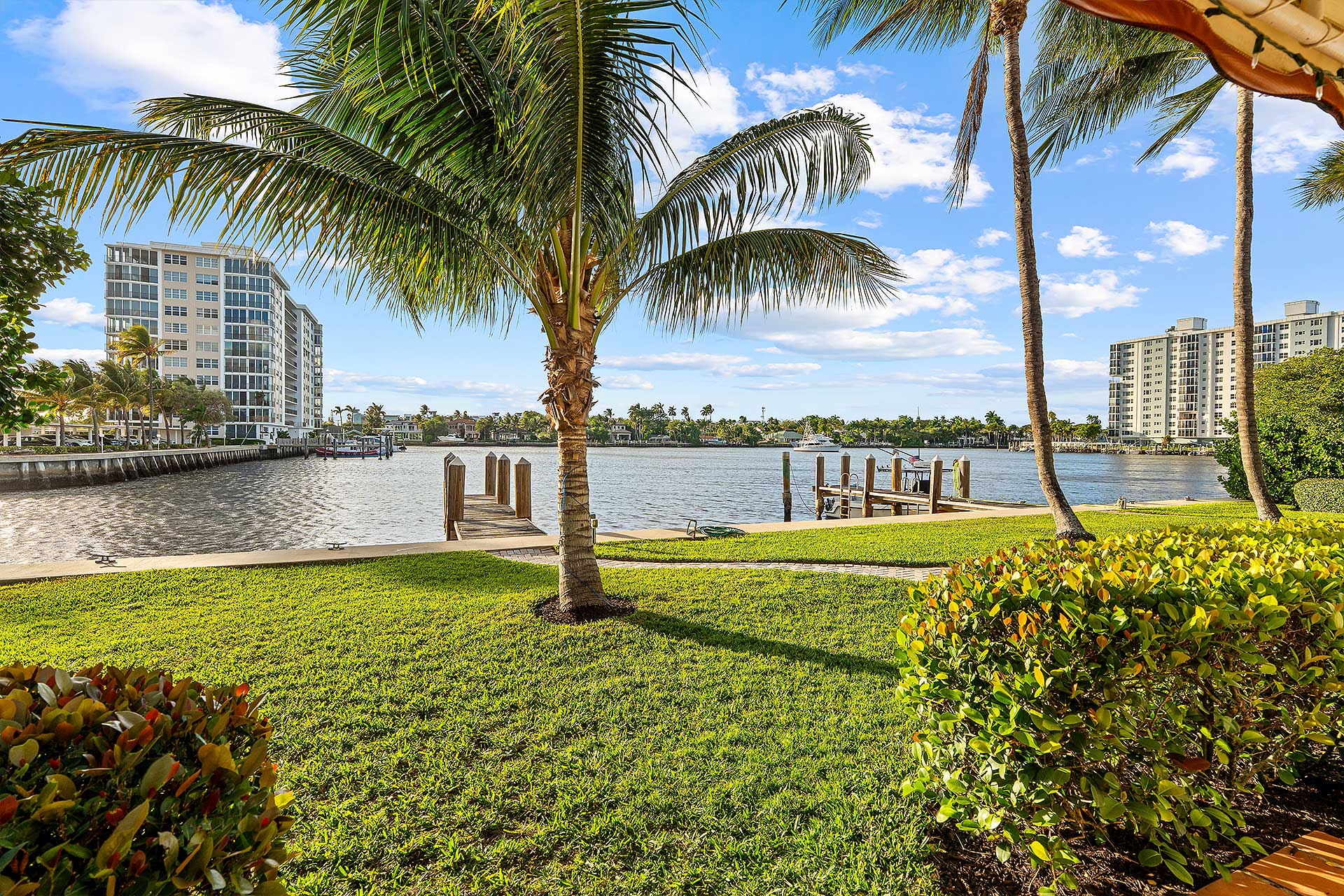 This Intracoastal townhome features a 30-foot dock extending from a rebuilt seawall. Currently, it can accommodate a vessel up to 40 feet, with the option of adding pilings to berth a larger yacht.