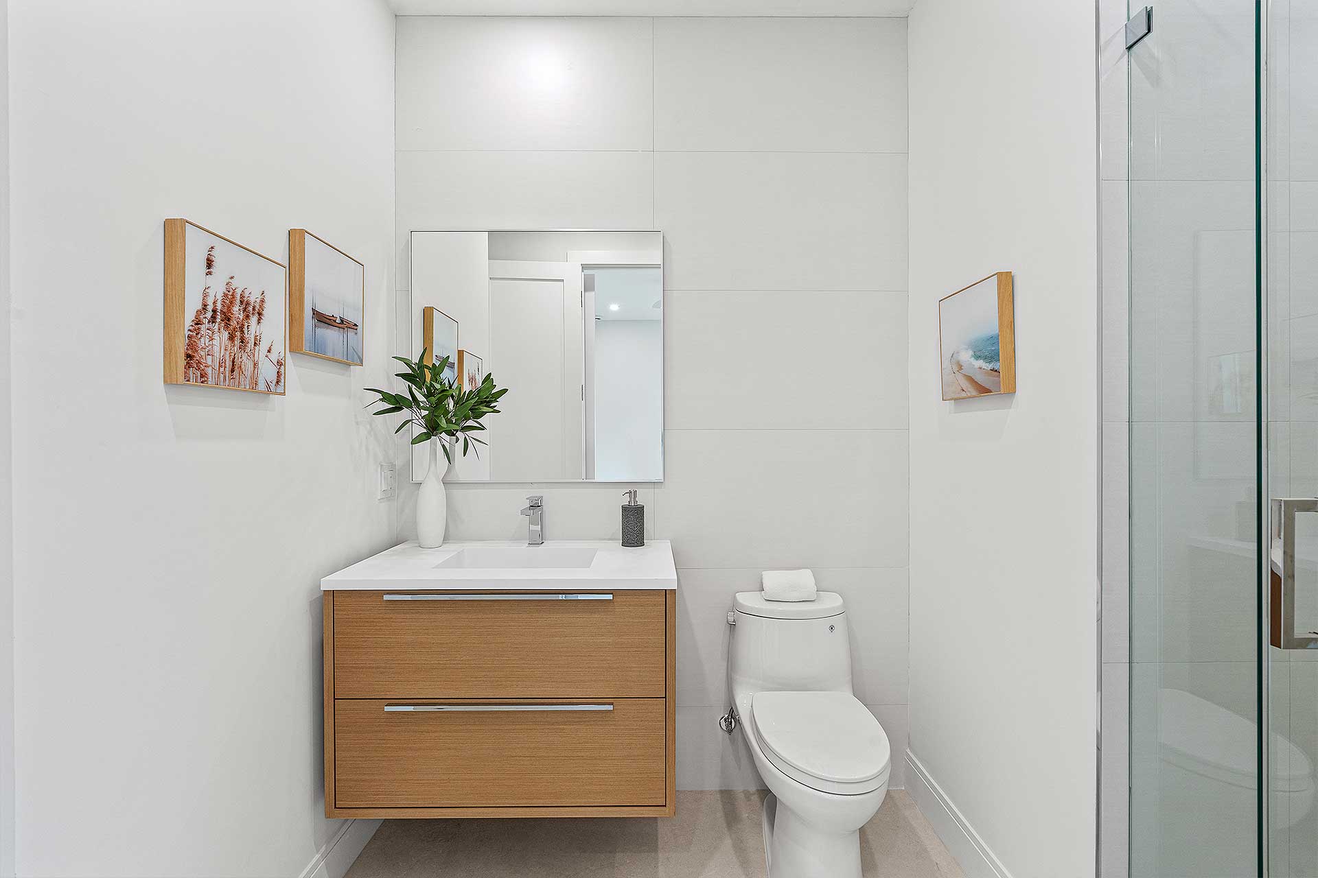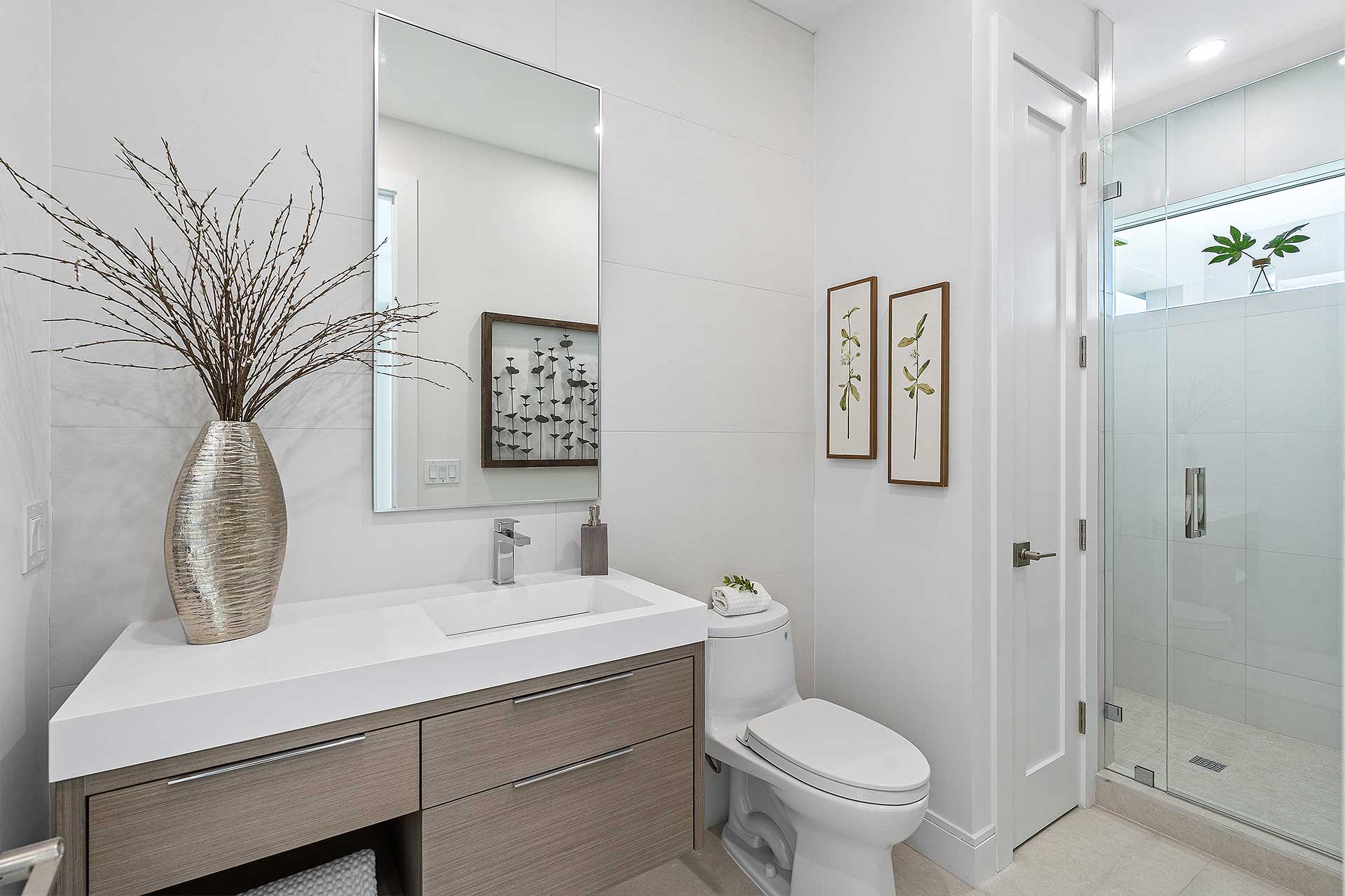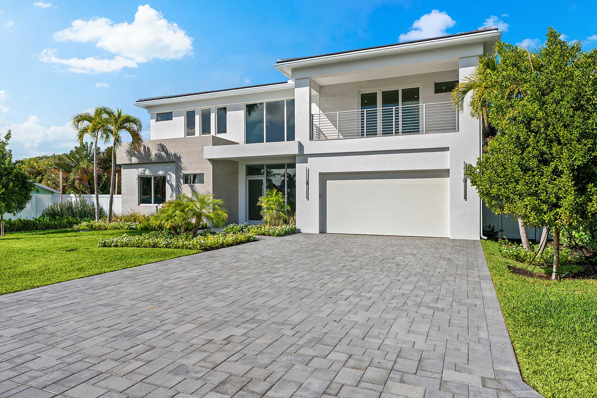 Introducing this, just recently completed, brand-new soft modern home in the coveted Lake Ida neighborhood. Showcasing a streamlined facade complemented by wood-look tile, this five-bedroom residence, with 3673± square feet of thoughtfully designed living space, leaves nothing to be desired. This layout has it all: a first-floor primary suite, a first-floor guest bedroom with adjacent full bathroom, 1st and 2nd floor laundry areas, large format porcelain tile flooring, white-framed impact-glass windows and doors, and an upstairs living area, just to highlight a few. As you cross the threshold into this spectacular foyer, the soaring 21-foot-high ceiling and graceful floating staircase immediately impress. The elegant living room flows out onto the loggia and pool area through pocketing sliding doors, blending interior and exterior spaces. Designed for effortless living with an open-concept layout, the dining room is just adjacent to the living room with an additional, cozy sitting room perfect for morning coffee or nightly entertaining just off the kitchen. An epicurean’s dream, the kitchen features top-of-the-line Thermador appliances, including a wine cooler, an oversized cook-island with a sink and warm, wood cabinets contrasted by clean white uppers. The primary suite, with a back-lit, coved ceiling, lives like an oasis of serenity with sliding glass doors that open to the pool patio. The suite includes two walk-in closets with custom built-ins and a luxurious bathroom with separate vanities and illuminated mirrors, glass-enclosed two-person shower with dual shower heads, separate soaking tub and separate toilet room. Staged as an office, the first-floor guest bedroom comprises a large closet and is adjoined by a full bathroom in the hallway. Upstairs, the loft overlooks the foyer and features sliders that open to a large balcony over the loggia. Also on the second floor are three ensuite bedrooms, one of which includes a balcony offering views to the front garden and a custom-fitted walk-in closet. Completing this residence is a laundry room with Samsung appliances and custom cabinetry that includes a hanging rack, as well as an attached two-car garage with an impact door. Don’t miss this rare opportunity to enjoy a brand-new, coastal contemporary, five-bedroom residence with many amenities in the highly desirable Lake Ida, Delray Beach neighborhood!