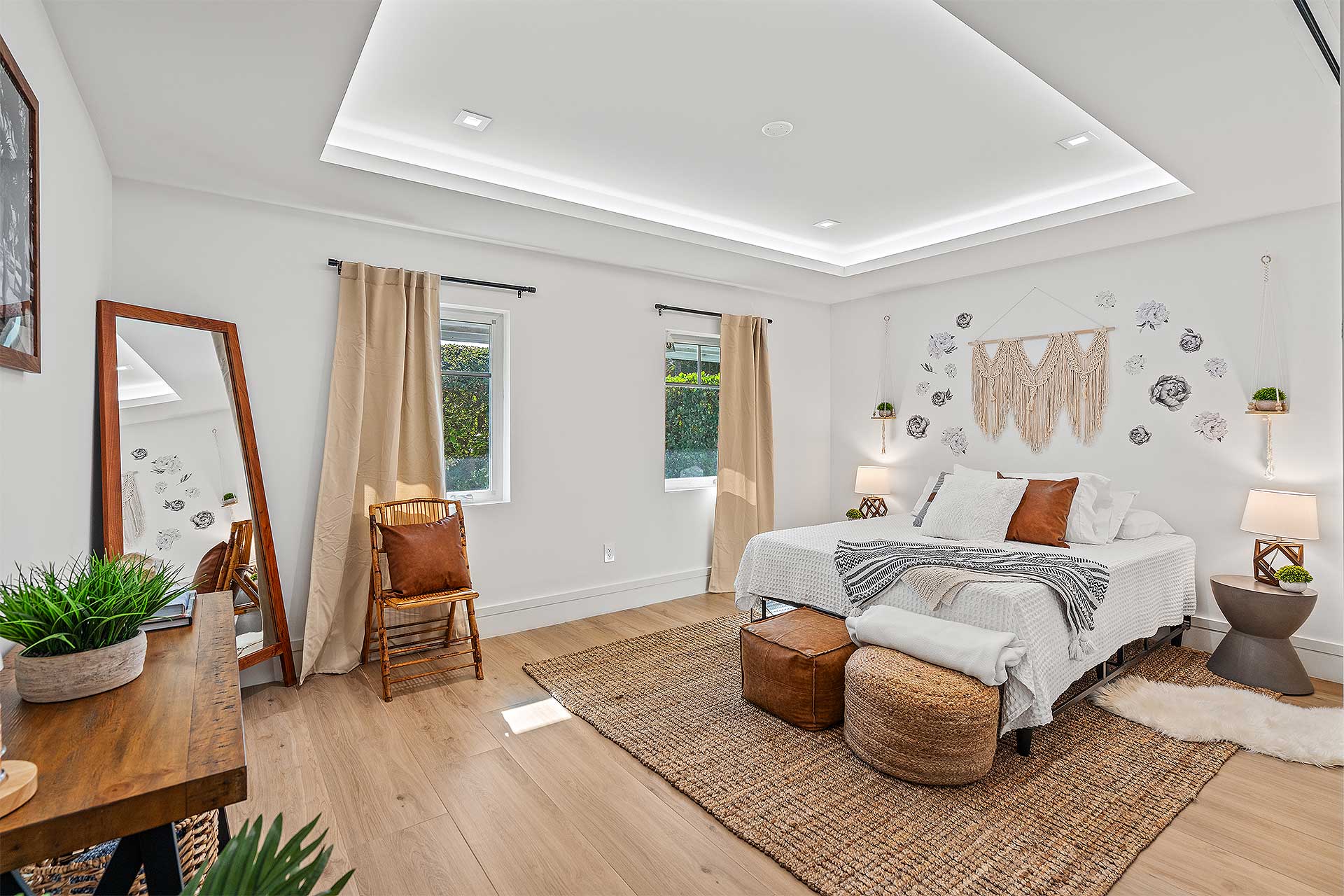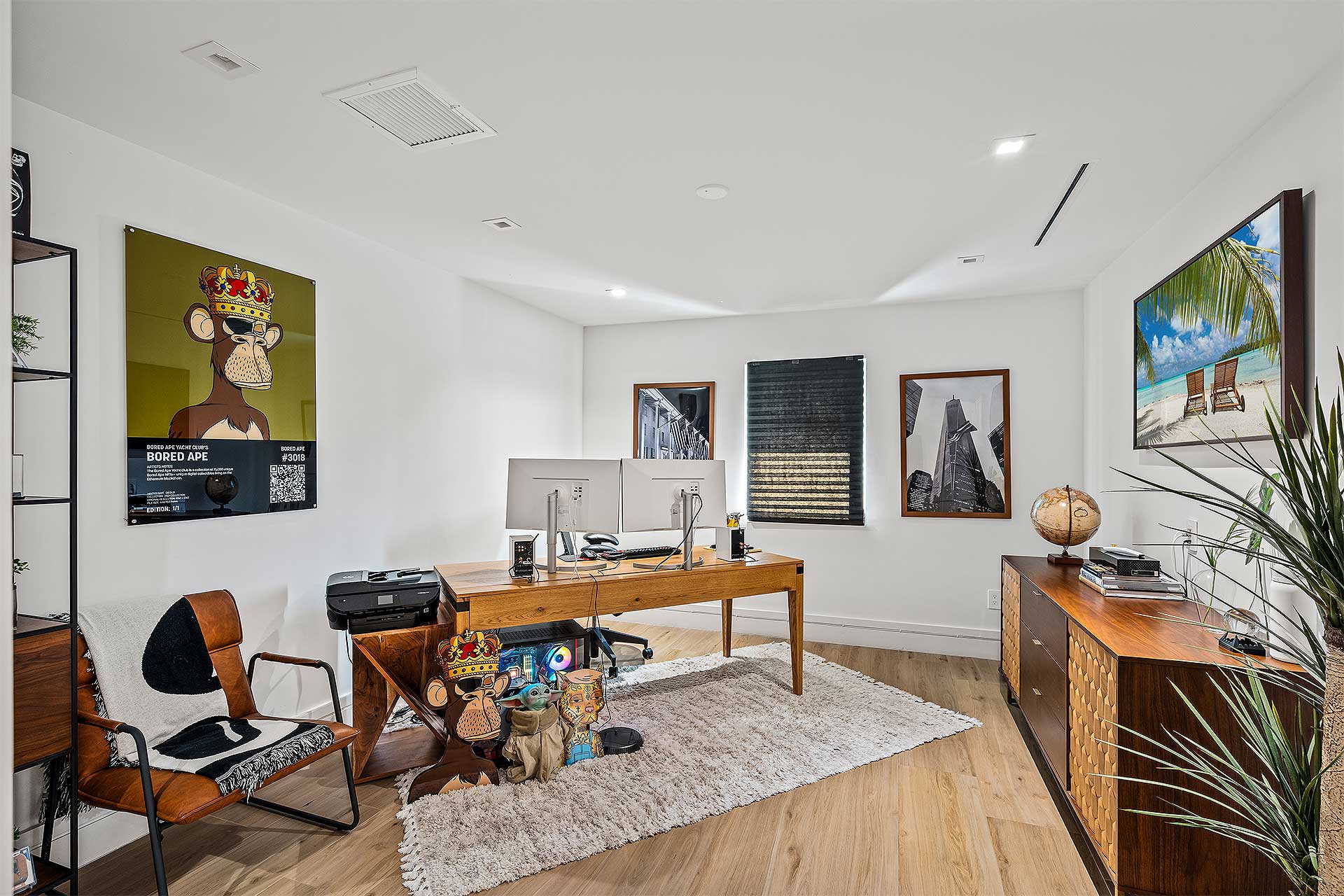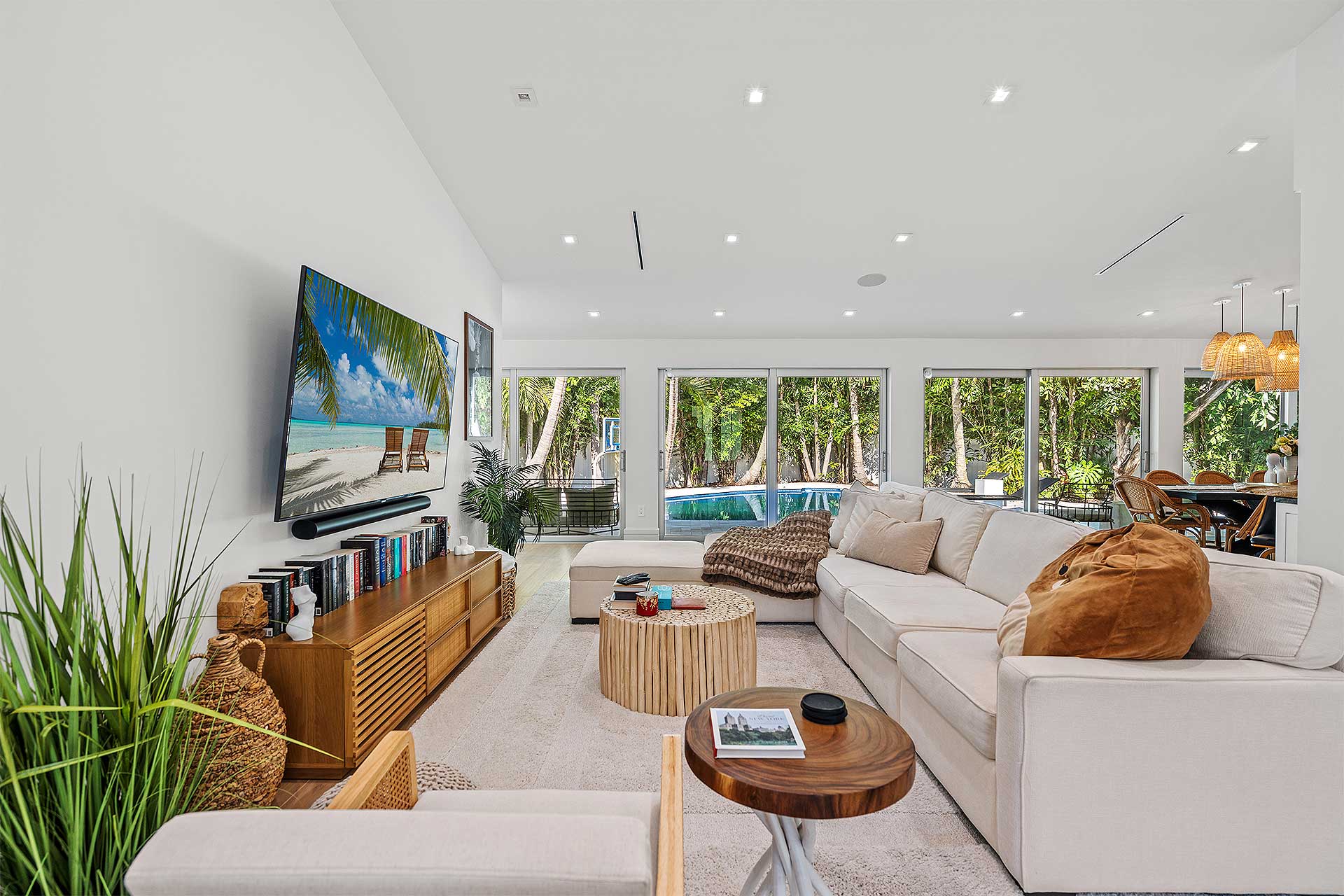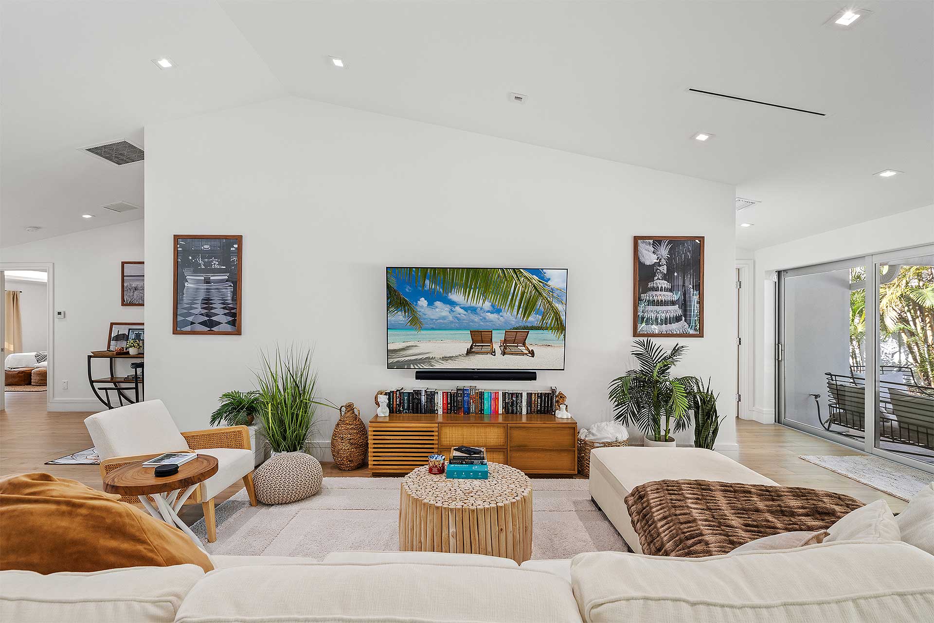 This coastal modern-style gem, built in 2020 by Bella Homes, exemplifies serene sophistication in a lushly landscaped private setting. Tucked within Delray Beach’s coveted Lake Ida enclave, the residence conveys a refined sense of contemporary calm, where light, texture and design come together in perfect balance. Inside, with five bedrooms and 4,383± total square feet, sunlit streamlined interiors showcase a pleasing white-on-white color palette complemented by pale wood-plank flooring and volume ceilings. The open-concept floor plan creates an effortless flow, with all major rooms opening to the lush tropically landscaped pool patio, engendering an ideal environment for indoor/outdoor entertaining as well as formal and casual living. The elegant reception room introduces the chic great room’s living and dining areas that blend seamlessly with the chef’s kitchen, all oriented to pool views. Combining artistry and utility, the chef’s kitchen is fitted with stainless-steel professional-grade appliances, custom contemporary cabinetry – with some illuminated and fronted by glass doors for display — and a handsome work island accented by a driftwood countertop extension that serves as a casual breakfast bar. The first-floor primary suite, a tranquil retreat, also opens to the pool area, and its spa-like bathroom is finished with a double sinks, a stand-alone soaking tub, a glass-enclosed walk-in shower and separate water closet. Completing the first-floor layout are two garden-view guest bedroom suites with one currently repurposed as an office, a cabana-bathroom, laundry room and two-car garage. Upstairs, the loft lounge connects two beautifully appointed guest bedroom suites, creating an ideal haven for visitors. Enhanced by thoughtful details, including a metal roof and decorative tilework in the bathrooms, this contemporary residence, on a beautiful parcel of land in a coveted neighborhood, captures the essence of coastal living.