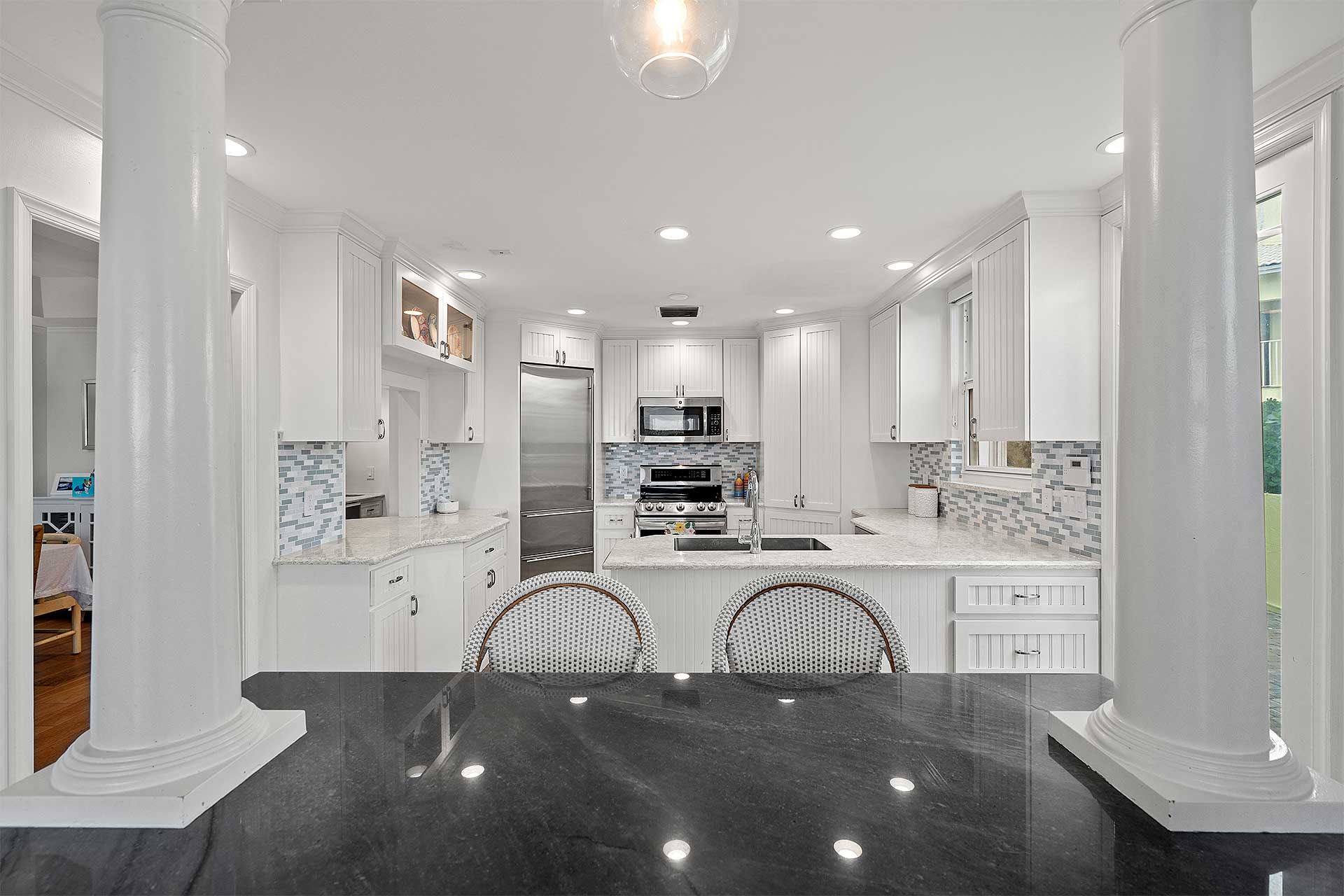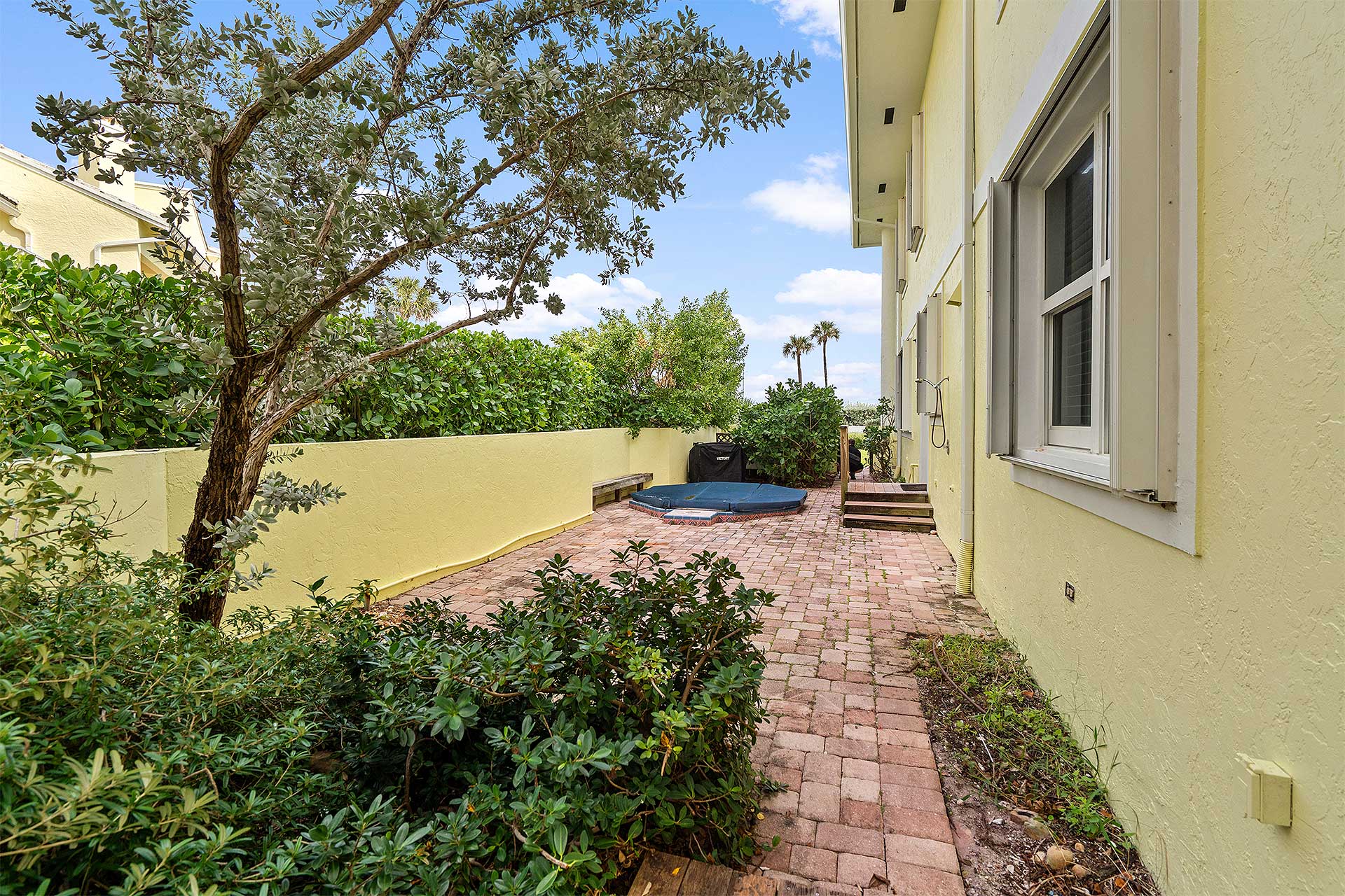A gated development with only 26 townhomes, amenities of Ocean Ridge’s ‘Turtle Beach’ include a pool, tennis court, two beach pathways. This rare townhome is directly on the ocean with a beachfront patio and a side yard, where a sunken spa offers an added luxury.