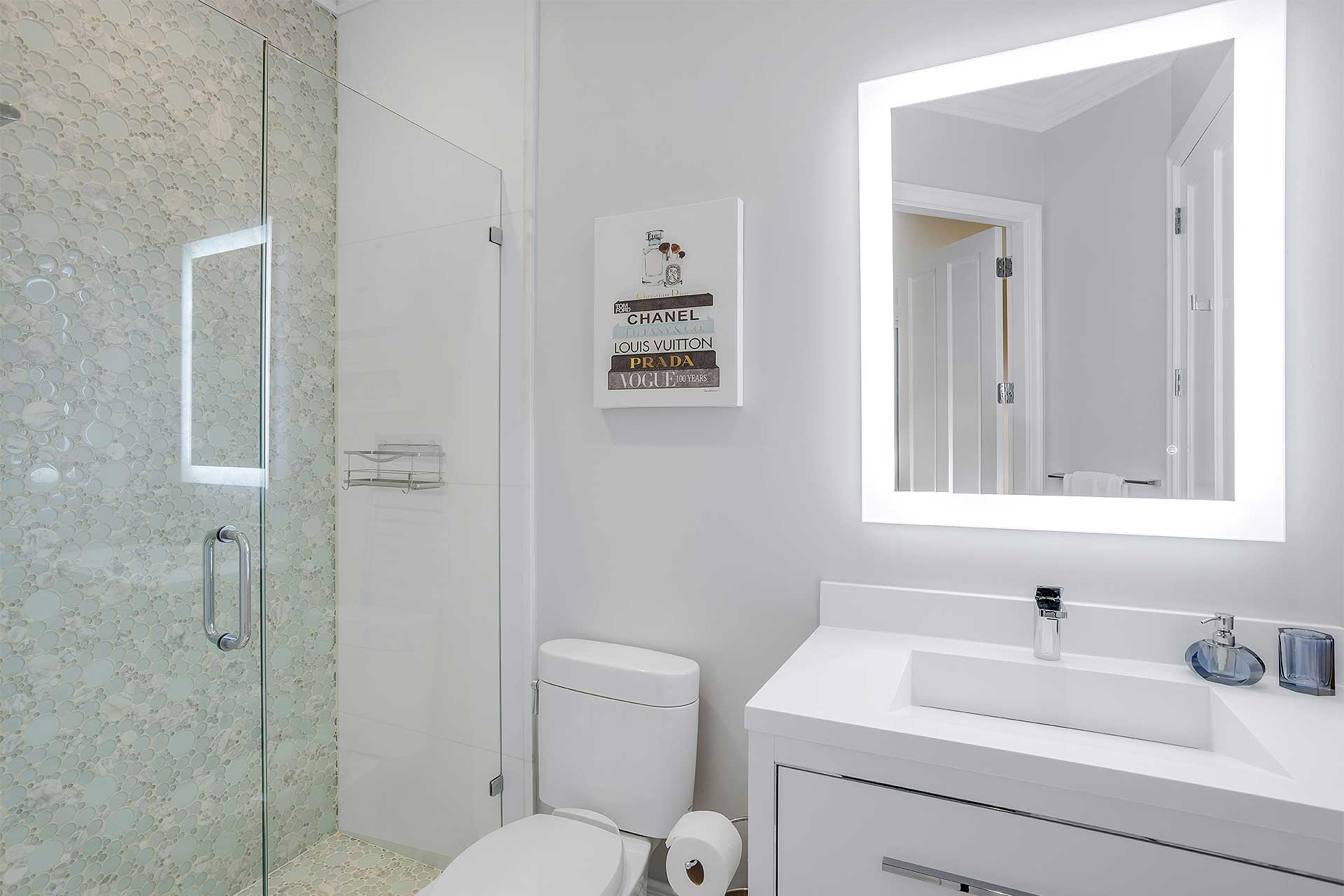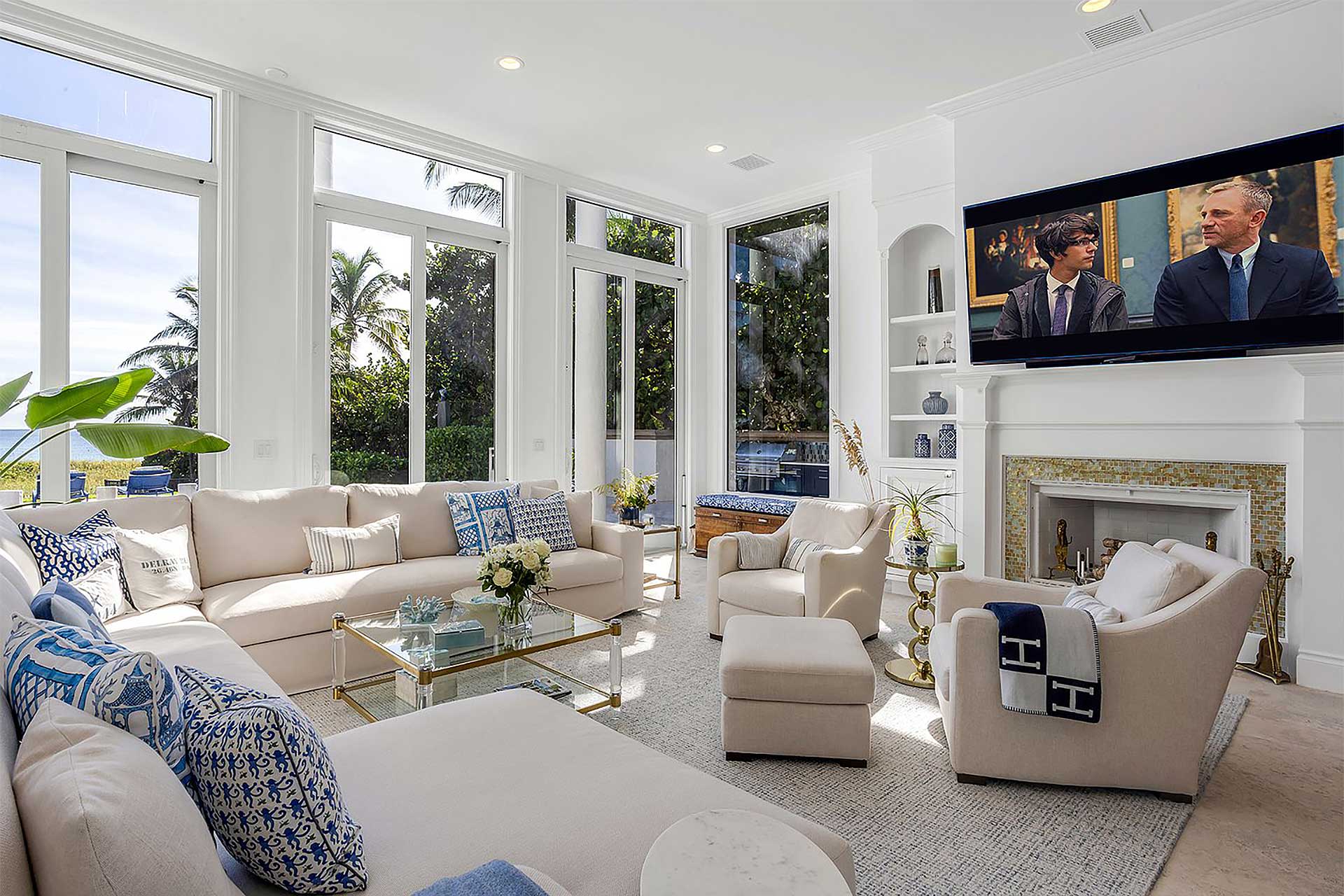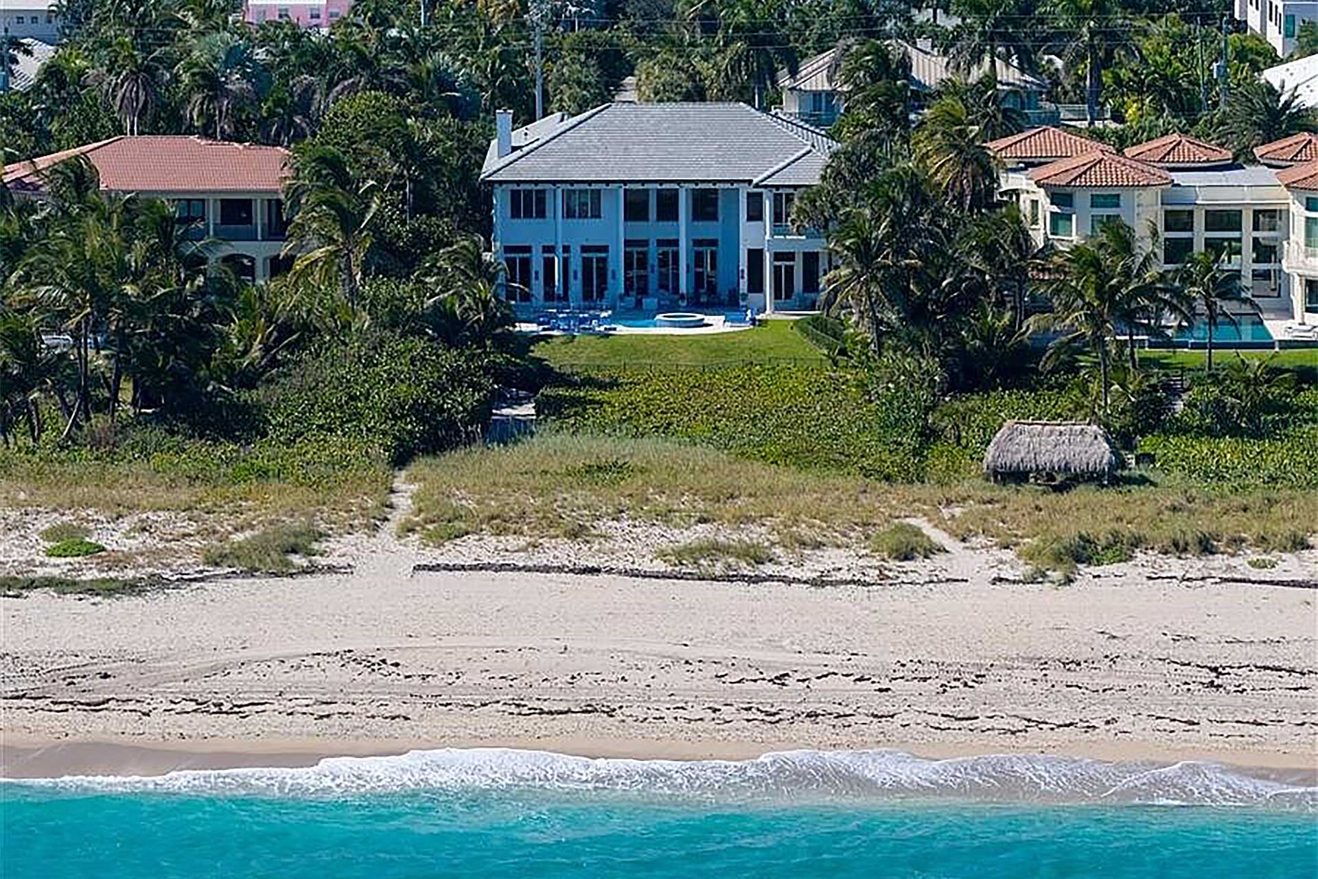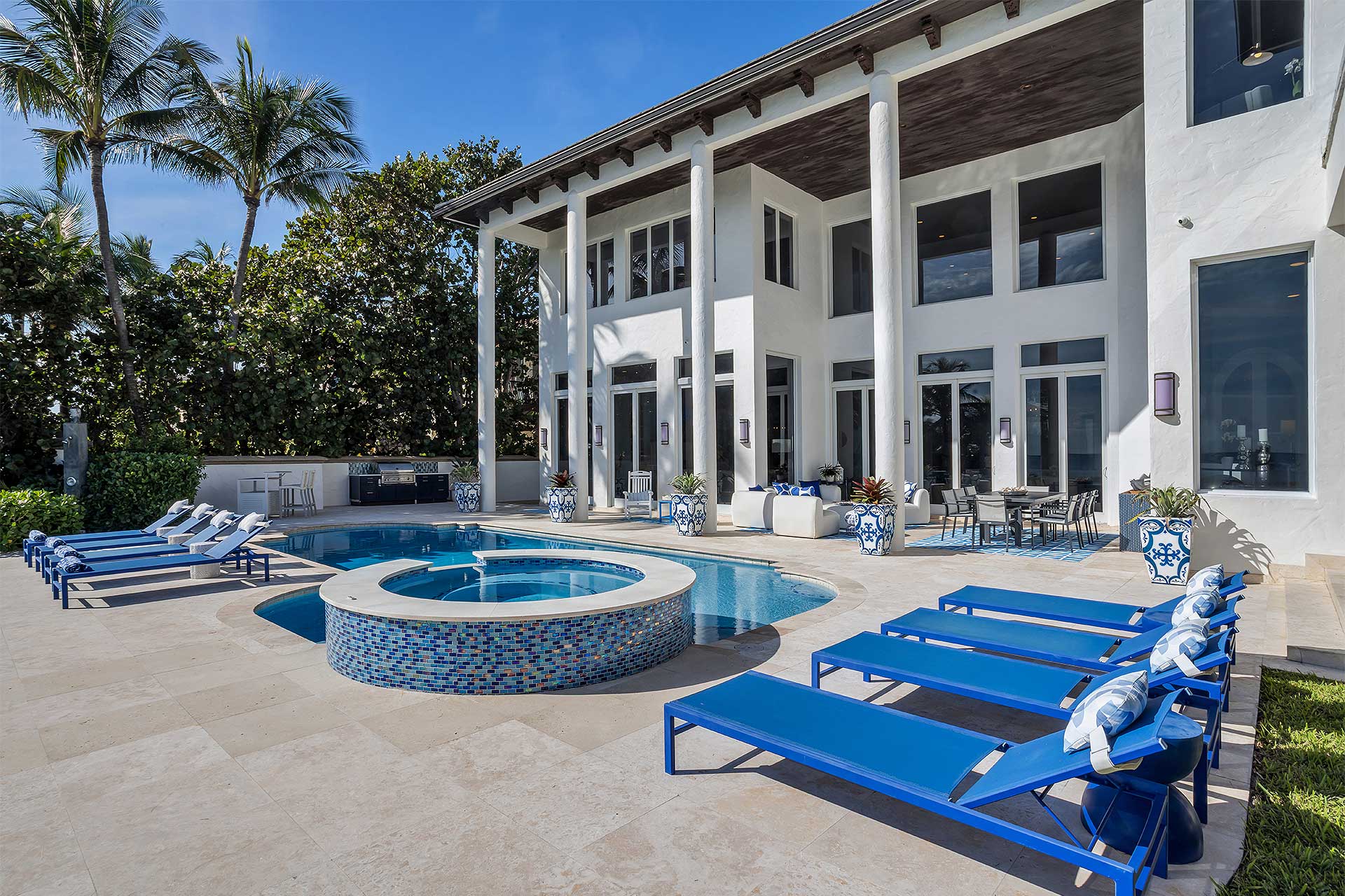 This tropically landscaped estate showcases 100 feet of direct ocean frontage and sits 18 feet above sea level. The resort like backyard features a completely redone saltwater heated pool and all new spillover spa, an outdoor shower, an expansive loggia with dining and lounging areas, outdoor TV, and a new summer kitchen and grill. Head down the private path to access the beach.