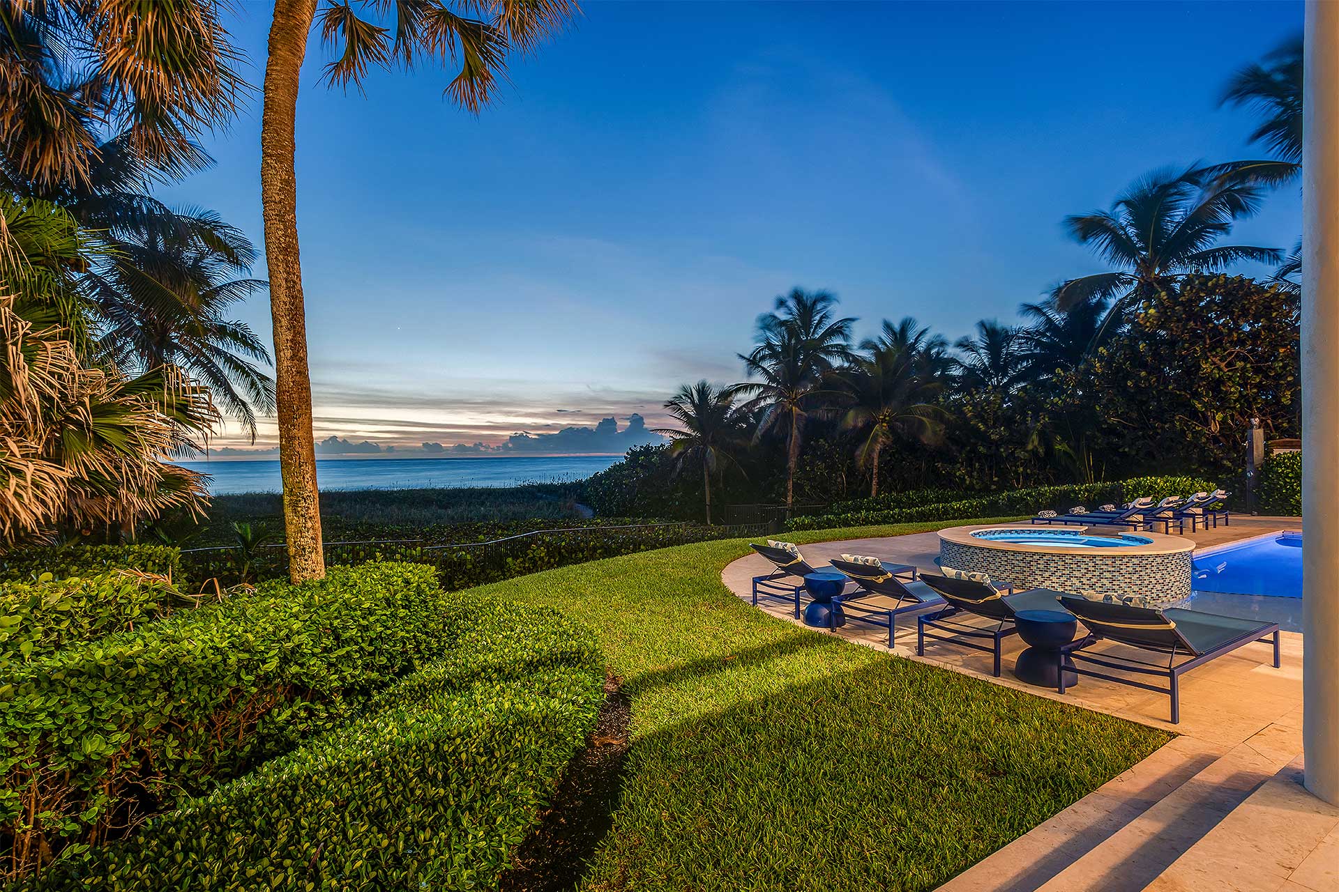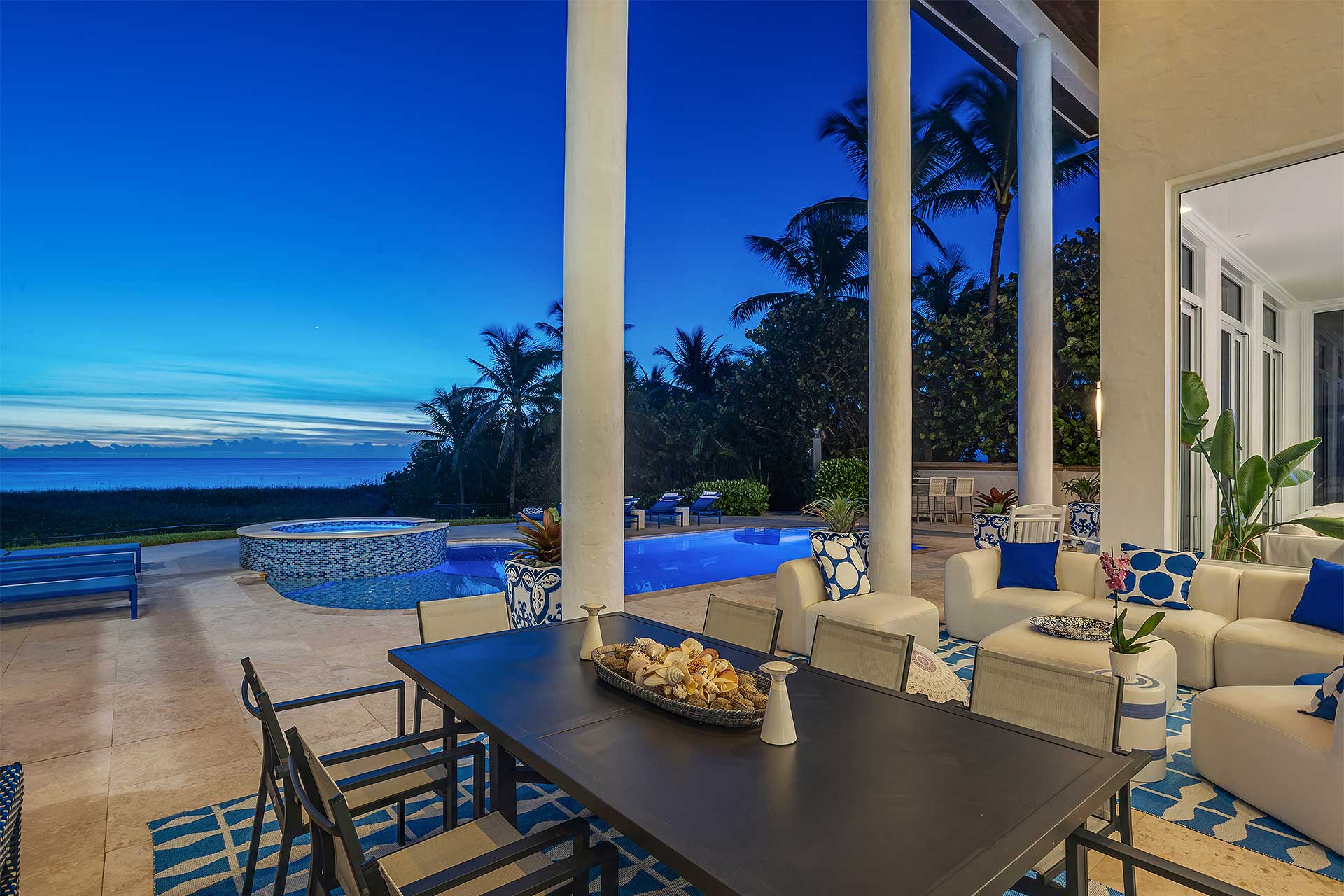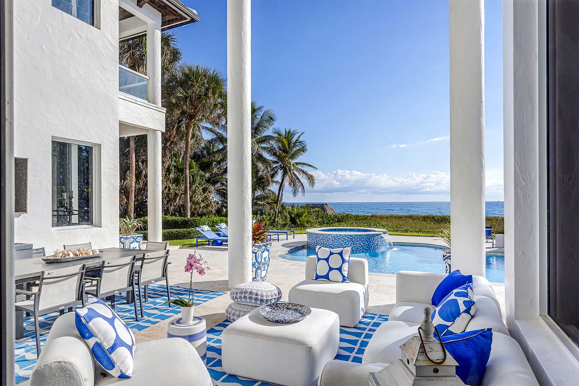 A picturesque oceanfront sanctuary for those who seek exceptional refined living in Delray Beach’s exclusive North Ocean enclave, this beautifully furnished estate is infused with a European aesthetic that harmoniously blends timeless elan with modern elegance. Crafted with premium finishes and designed with a thoughtful layout, it seamlessly accommodates both intimate gatherings and grand festivities all while soaking in the seaside vistas. In the heart of South Florida’s famed Gold Coast, Delray Beach offers the ultimate sought-after style of living that combines a resort-like ambience highlighted by the Atlantic Ocean’s dramatic sugar-sand beaches, paired with the sophistication and panache of Delray Beach’s vibrant downtown with eclectic shops, cafes and restaurants that line chic Atlantic Avenue.